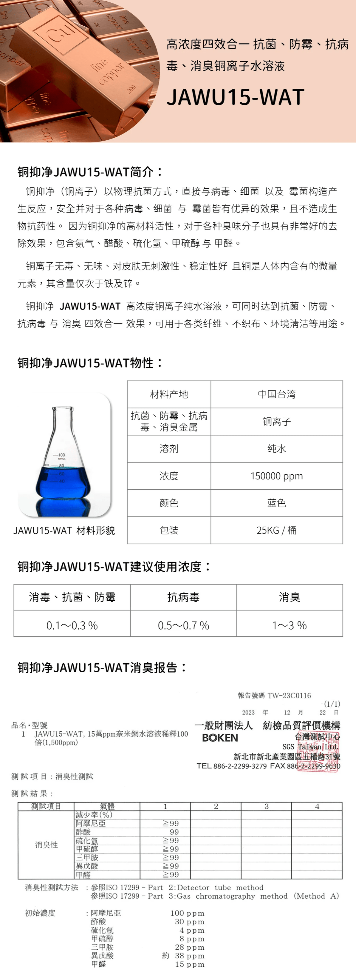 铜抑净、铜离子、物理抗菌、病毒、细菌、霉菌、生物抗药性、臭味、氨气、醋酸、硫化氢、甲硫醇、甲醛、抗菌、防霉、抗病毒、消臭、无臭、无味、无刺激性